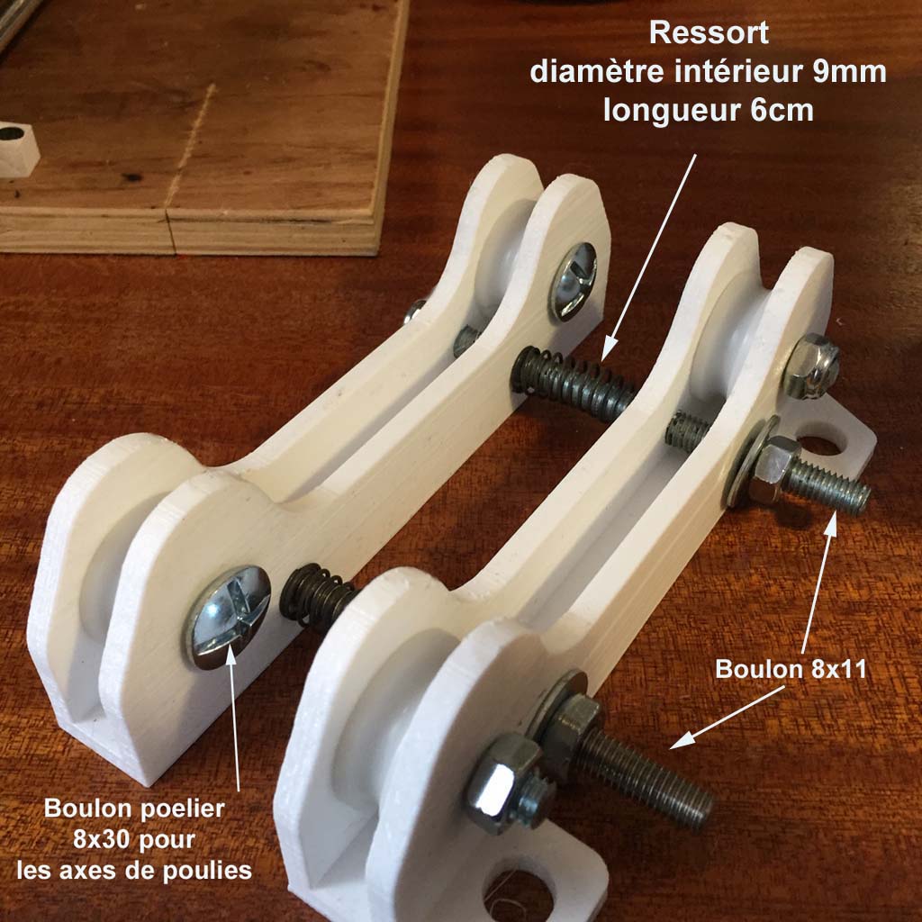 J'ai utilisé des tiges filetées de 8mm. Attention, pour les tiges filetées creuses, le filet n'est pas au pas normal M8. Les écrous sont à rechercher dans le rayon des tiges filetées. (réf 6157003 M8 Suki)