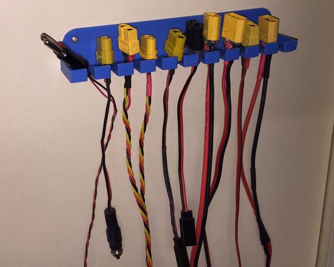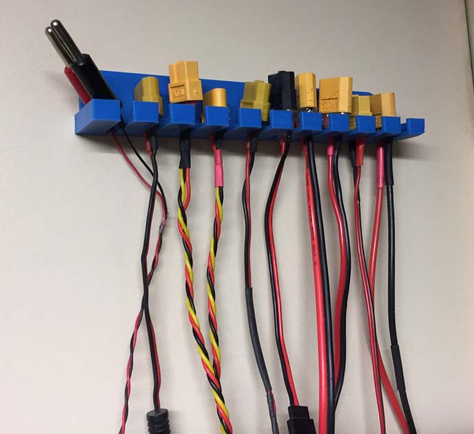 Pour l'atelier, un support pour les câbles de charge : Fichier STL : Porte_Prises.stl