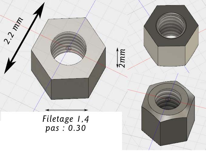 Norbert est en panne d'écrou de 1,4mm. Pas de problème, je vais les imprimer