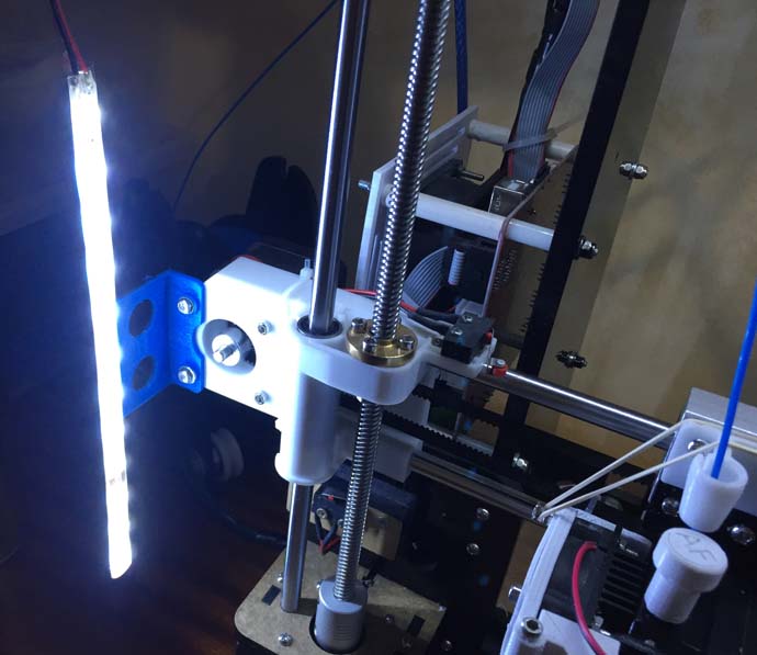 J'ai aussi réalisé un support pour une bande de leds pour pouvoir vérifier l'entrée du filament