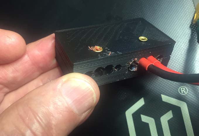 j'ai mis 2 oeillets (de servos) pour éviter de faire fondre le PLA